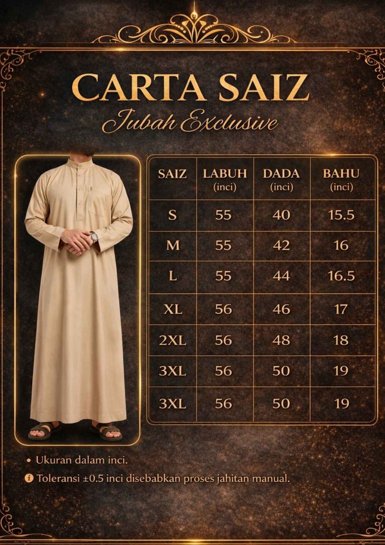 Jubah ini dikeluarkan dalam kuantiti terhad bagi setiap saiz & warna untuk memastikan kualiti terjaga dan potongan kekal kemas.